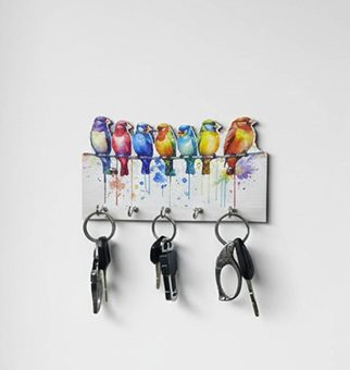 Chidiya Key Stand Wooden Printed Size: 6x8inch