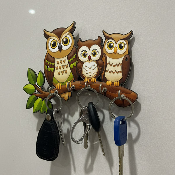 Owl Key Stand Wooden Printed Size: 6x8inch