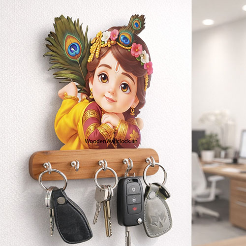 Sleeping Krishna Keystand Wooden Printed With 2 Wall Sticker Free| Size 6x8inch